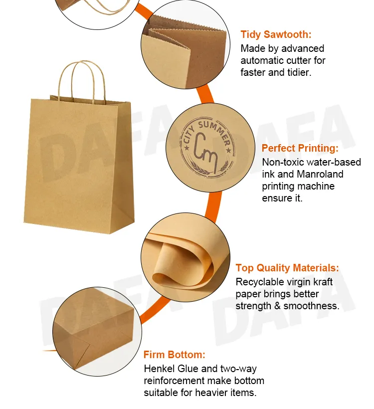 Customized Kraft Paper Gift Bag With Handle Reusable Biodegradable Kraft Paper Packaging Top Handle Bag